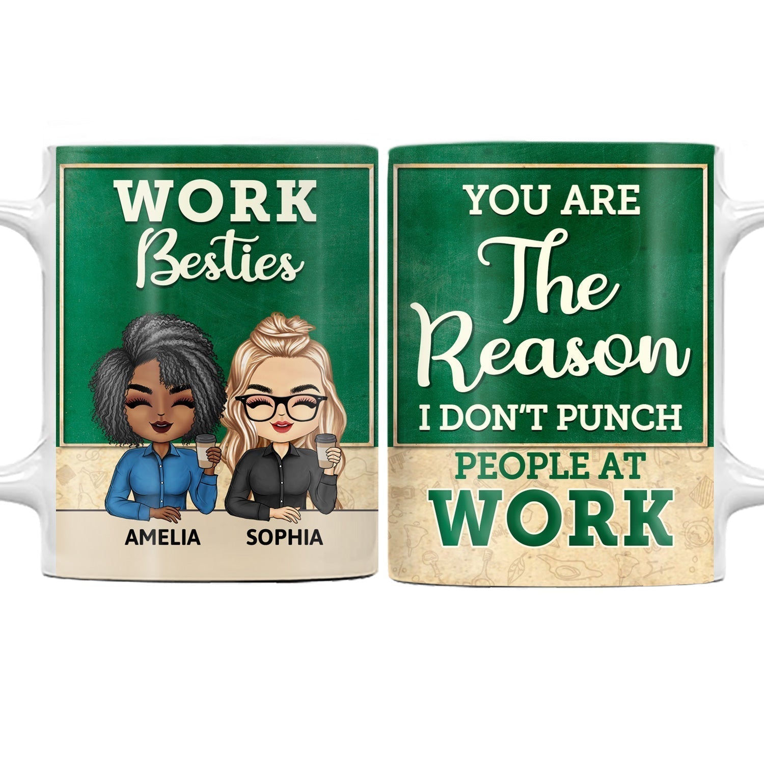You Are The Reason I Don't Punch People At Work Teacher - Funny, Anniversary, Birthday Gifts For Colleagues, Coworker, Besties - Personalized Custom White Edge-to-Edge Mug